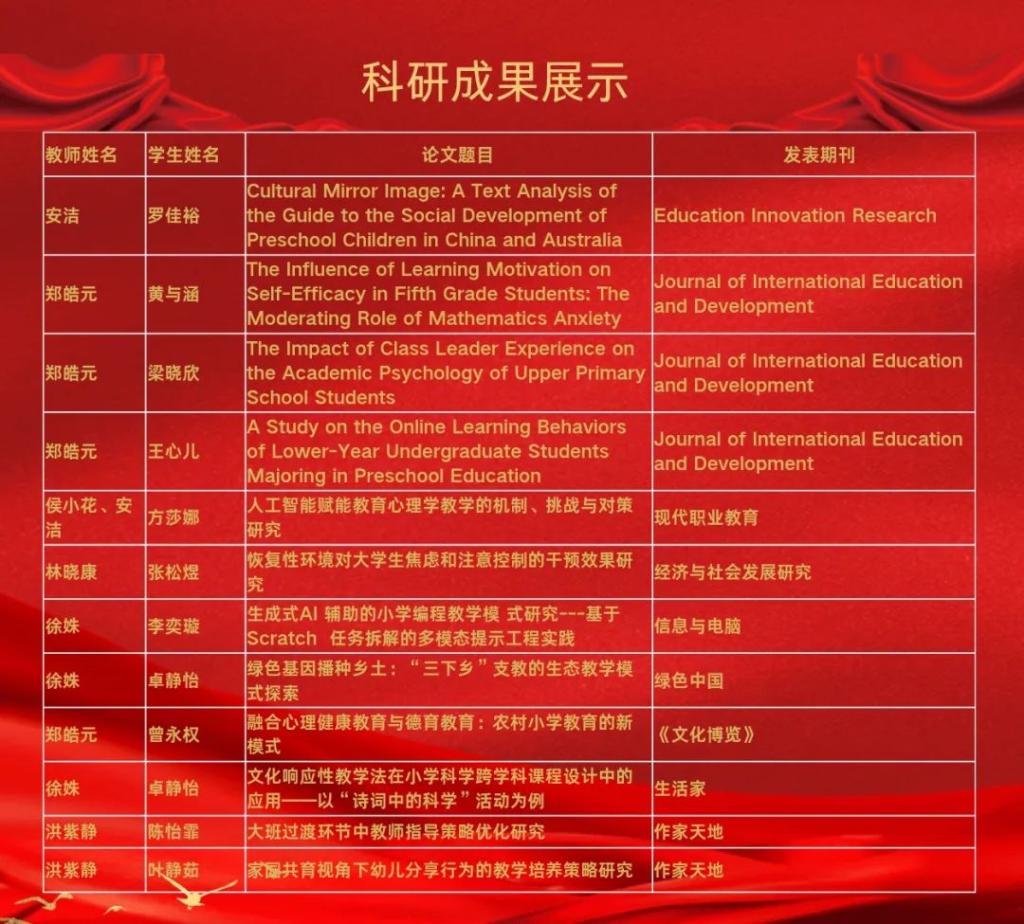 在教育改革不断深化的当下,1946伟德国际源自英国秉持“科研育人、教学相长”的办学理念,积极探索本科阶段“师生共研、以研促学”的高质量育人路径。近期,1946伟德国际源自英国师生在学前教育和小学教育领域成果丰硕,联合完成的十余篇科研论文相继发表于国内外专业期刊,彰显出浓厚的科研氛围与卓越的人才培养成效。 1946伟德国际源自英国着力构建“教师主导、学生参与”的科研育人机制,鼓励本科生在导师引领下深度参与学术选题、论文撰写及研究项...