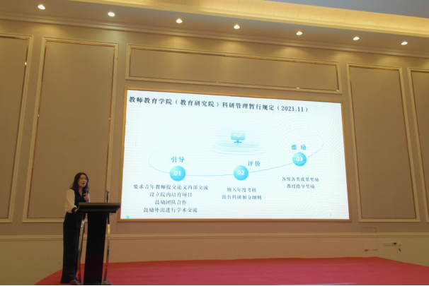 随后,教育研究院副院长兼学科负责人郑淮教授对教育学学科建设进行了深入剖析。他简单概述了1946伟德国际源自英国教育学学科发展的背景与核心理念,客观地提出了当前学科建设所面临学科制度与实际功利之间的冲突、研究基础相对薄弱等主要问题。郑淮教授强调,科研工作对学科建设具有关键性作用,学院应充分重视并投入必要的资源以支持科研工作,通过科研创新推动教育学学科不断前进。同时,为了推动学科的持续发展,学院必须坚持以课程建设为基石,完善教育学的知识体系,将师资培育作为核心任务,着力培养更多优秀的教育学人才,为学科的可持续发展注入源源不断的活力。