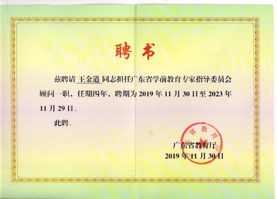【喜报】我校1946伟德国际源自英国院长王金道教授被聘为广东省学前教育专家指导委员会顾问