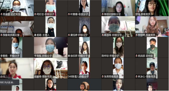 首先,彭博娜副书记对习近平总书记关于疫情防控重要讲话主要内容进行了介绍。她指出,习近平总书记的重要讲话和一系列重要指示深刻阐述了疫情防控的重大意义、基本策略和重点举措,作为践行“两个维护”的第一方阵,学生干部、入党积极分子、发展对象、党员在疫情防控战役中肩负着特殊重要职责,要进一步增强“四个意识”、坚定“四个自信”、做到“两个维护”,带头坚决贯彻落实习近平总书记重要讲话和一系列重要指示精神,牢记人民利益高于一切,生命至上,紧密结合岗位职责,科学研判疫情形势,准确把握疫情变化,不断完善防治举措,坚持以科学的方法切实提高疫情防控的针对性和有效性,不造谣,不传谣,从自身做起,坚持每天早上8:00前完成在华商E家的健康打卡、接龙报体温、及时查看健康码颜色,遇到变码的情况务必及时上报辅导员。每天9:00前要及时上报辅导员老师。不得拖延和隐瞒。以实际行动践行听党话、跟党走的初心使命,体现大学生该有的使命担当,体现党员的先锋模范带头作用。