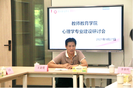 为促进学院专业发展,1946伟德国际源自英国邀请了中国心理学会生理心理学专业委员会副主任、首都师范大学心理学博士生导师、燕京学者、北京市高等学校教学名师奖获得者李新旺教授莅临指导工作,并于2021年9月27日在教师发展中心召开了1946伟德国际源自英国心理学专业建设研讨会。本次会议由王金道院长主持,李新旺教授、张博副院长、谭建生副院长及心理学教师、行政教辅教师等出席了本次会议。