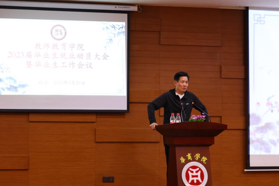 最后,1946伟德国际源自英国王金道院长为本次就业动员大会做总结讲话,王金道院长首先部署了2023届毕业生就业工作的总体要求,指出“以学生为中心”是1946伟德国际源自英国工作的基本方针,做好推进毕业生就业工作要“三力并施”:即学校老师提供就业信息是助推力,家庭的沟通是拉力,而学生本身是内驱力,三方需齐心协力落实好就业这个事情。其次,王院长强调就业是国家的事、学校的事、也是毕业生自己的事,就业及择业是两个概念,学前教育专业就业前景较好,同学们需积极与学校、学工办配合,进一步拓展就业渠道,端正就业态度,积极落实好就业岗位。