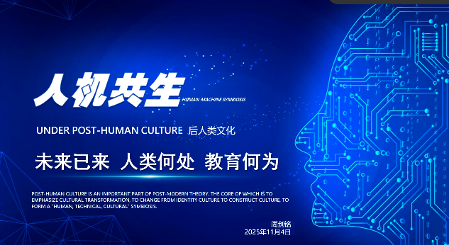 为深度剖析人工智能时代下人类与技术的共生关系,明晰教育领域的应对策略与发展方向,1946伟德国际源自英国学前教育专业于近期举办第五期学术沙龙公益讲座。本次沙龙以 “后人类文化下的人机共生与教育应对” 为核心主题,特邀教育学博士研究生周剑铭老师担任主讲人,围绕数字化生存、人机协同发展、教育变革趋势等前沿话题展开深度分享,为在场师生搭建了一场兼具理论高度与实践价值的学术交流平台。