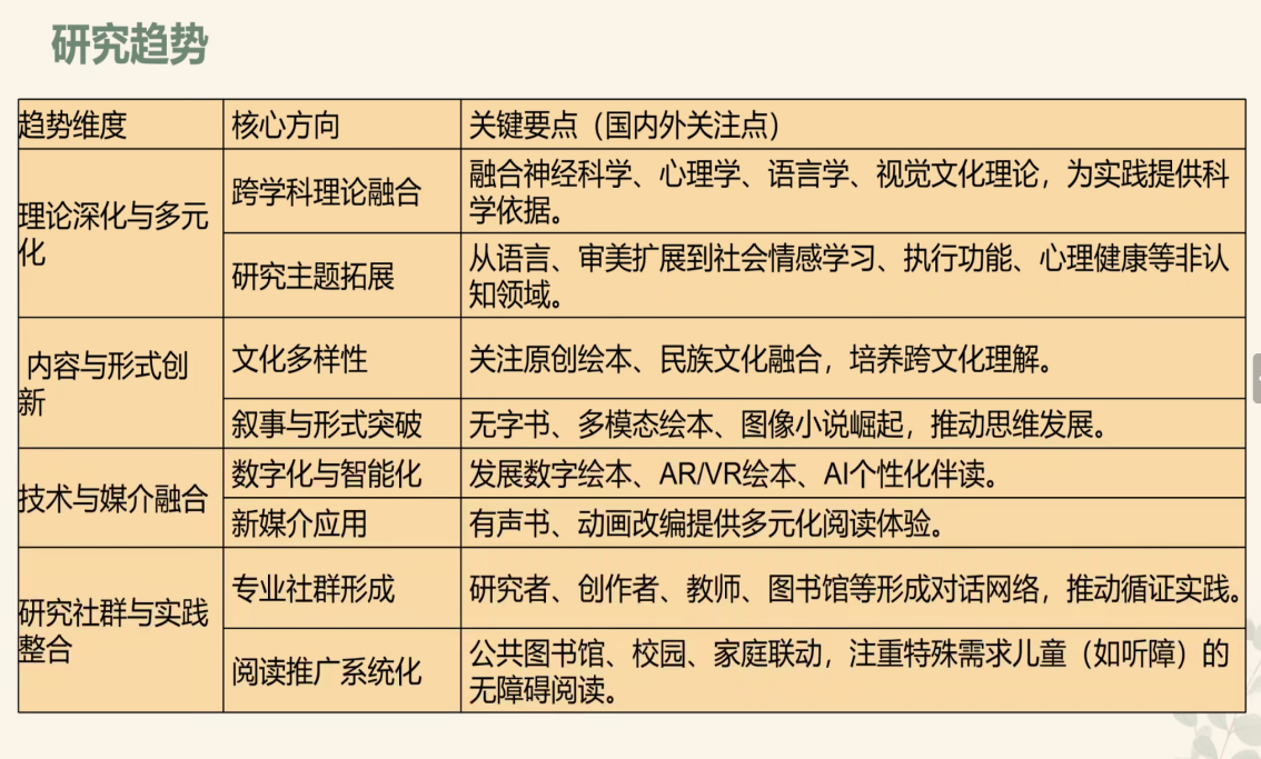 为助力理论落地实践,胡老师进一步结合绘本理论,探讨了绘本在课程中的有效运用策略:从绘本的多元定位(如作为课程导入载体、知识拓展工具、思维训练媒介),到基于儿童需求的绘本生成策略(如结合生活经验筛选绘本、根据课程目标改编绘本),再到绘本与课程的深度融合路径(如在语言课程中通过绘本培养表达能力、在艺术课程中借助绘本激发创作灵感),均给出了具体且可操作的建议。此外,胡老师还分享了当前绘本阅读领域的研究趋势,包括跨学科理论融合(如心理学、社会学与绘本教育的结合)、研究主题拓展(如特殊儿童绘本教学、传统文化绘本开发)、内容与形式创新(如互动式绘本、数字化绘本设计)等,为在场师生打开了绘本教育研究的新视野。讲座互动环节,师生们围绕“绘本理论下绘本课程设计的难点突破”“不同年龄段儿童绘本选择的差异”等问题积极提问,胡老师结合自身研究经验与实践案例耐心解答。
