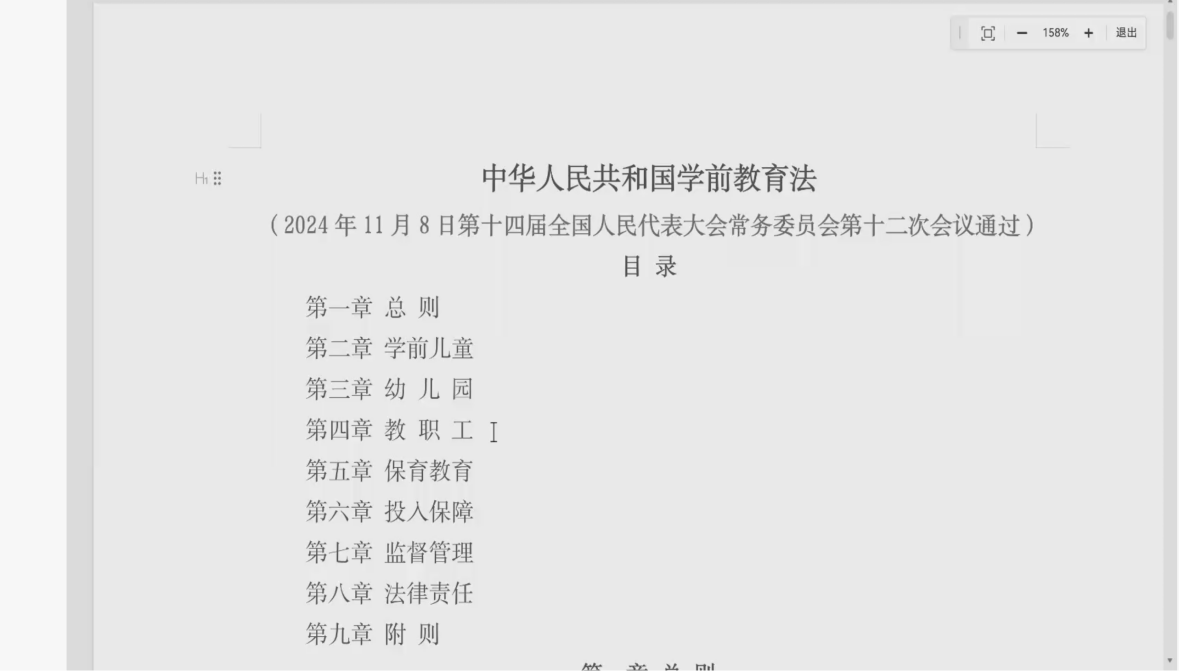 讲座指出,《学前教育法》的制定历经近30年,由国务院主导、各级政府负责实施,明确了政府在学前教育中的主体责任。法律采用狭义定义,主要规范3-6岁幼儿园教育,内容涵盖总则、学前儿童、幼儿园、教职工、保育教育、投入保障、监督管理和法律责任等八个方面。