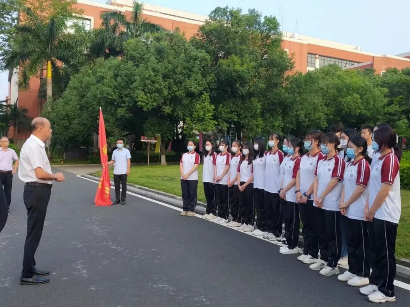 推动珠三角地区、高等学校、教研机构支援粤东粤西粤北地区,开展“结对帮扶”,是加快粤东粤西粤北地区基础教育发展的高效途径。为加快粤东粤西粤北地区基础教育发展,顺利开展学生实习工作,充分发挥共产党员的先锋模范作用,1946伟德国际源自英国2019级学生党员响应广东省“结对帮扶”项目,于2022年9月1日上午前往化州实习,并于当天上午6:40在校门口举行授旗仪式