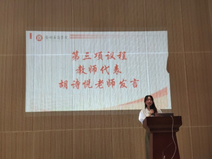 教师代表胡诗悦老师表示:“大学阶段是同学们实现梦想、积蓄能量的关键时期,也是以个人的意愿塑造自我的重要阶段。”并提出“六有”:有理想、有目标、有规划。有自信,有巧思,有爱心。学为人师,行为示范,作为一位新时代青年,教师代表王符老师提出以下两点期望:一是,树立理想,胸怀大志,铭记使命。二是,终身学习,苦练技能,全面发展。