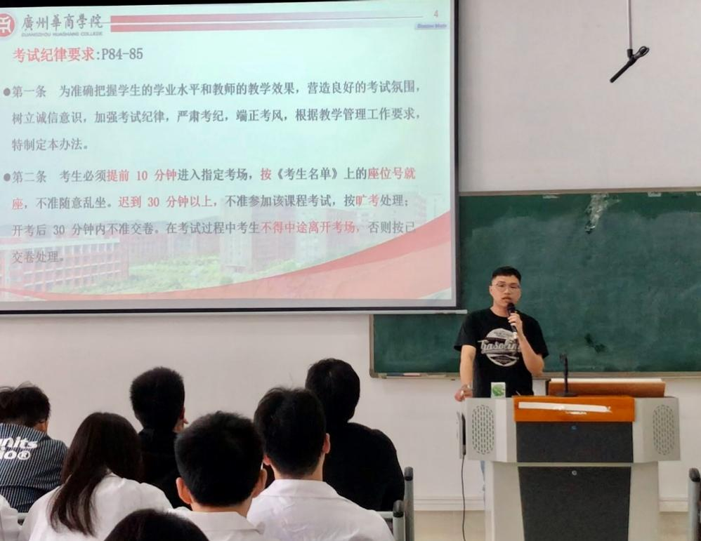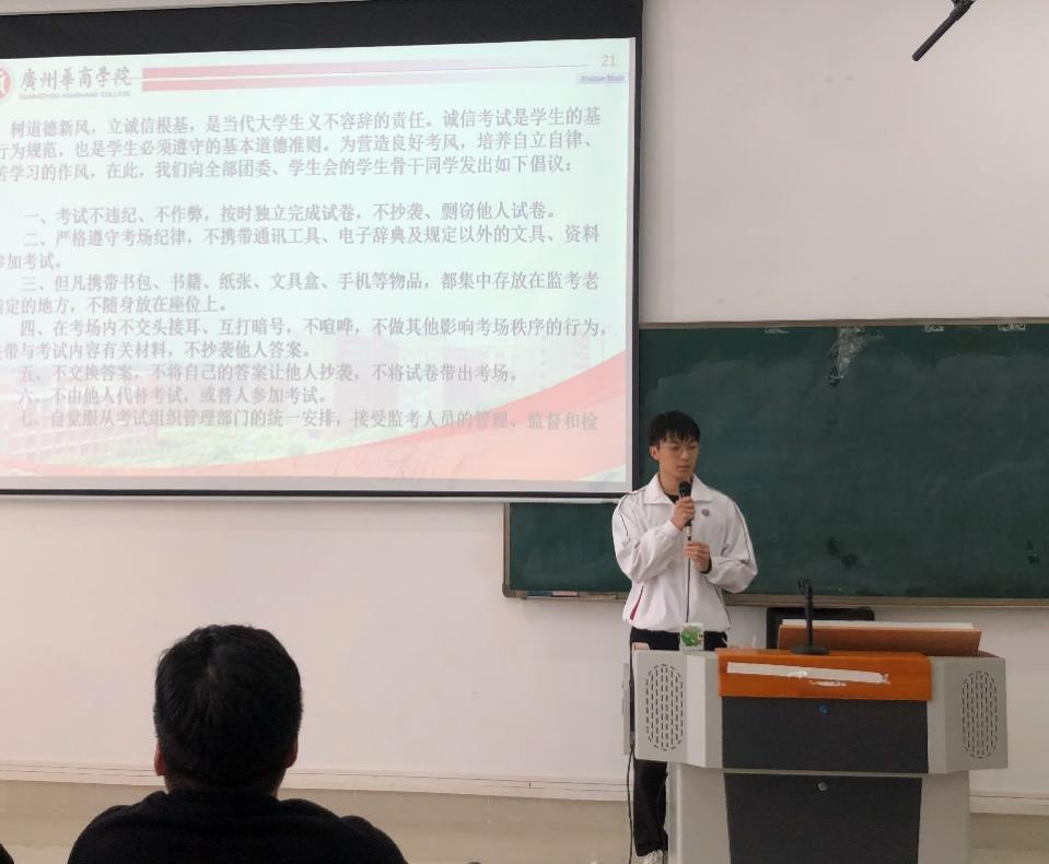 会议伊始,徐炯锋老师以学生手册上对考风考纪的相关要求作为切入点,向同学们强调了考试注意事项、考试违纪作弊认定及处理方法。他指出,同学们应熟悉学生手册上的要求,在考试前准备好身份证、学生证以便监考老师检查,进入考场后,听从监考老师的安排,做到认真应考。