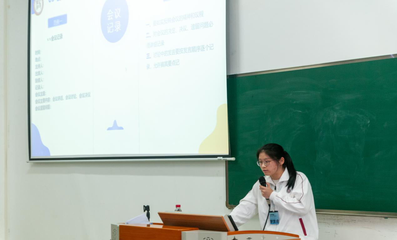 首先,学生会秘书处负责人代表对团学成员进行礼仪培训,对部门常用文书通知编辑等内容进行说明讲解,增强各部门负责人和工作人员对该部分工作内容的规范意识。