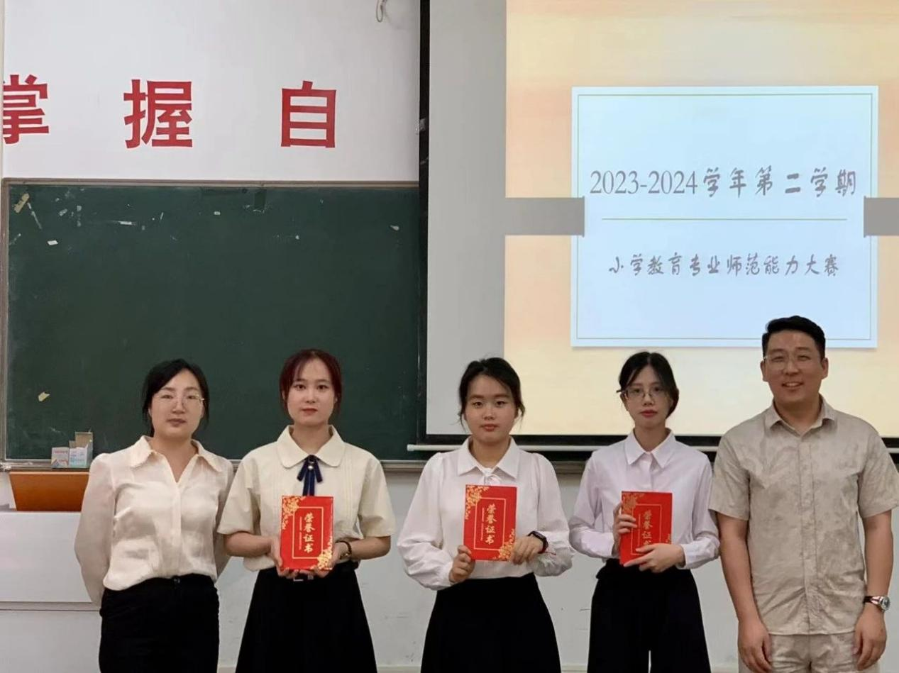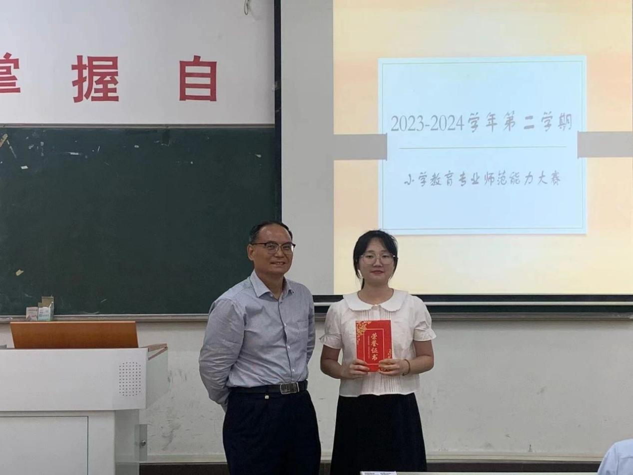 本次师范生教师职业能力大赛旨在锻炼学生的教学设计能力、课堂教学能力、信息素养等,提升学生站在讲台时候的自信心。班主任和专业老师也可借助本次师范生教师职业能力大赛选拔一些能力突出和表现优异的同学进行重点培养,也为后续参加地区、省级、国家级比赛做人员选拔和储备。我院于5月14日14:30—17:30在励志楼A202(语文组)和A203(数学组)举办了小学教育专业师范生教师职业能力大赛决赛并取得圆满成功。