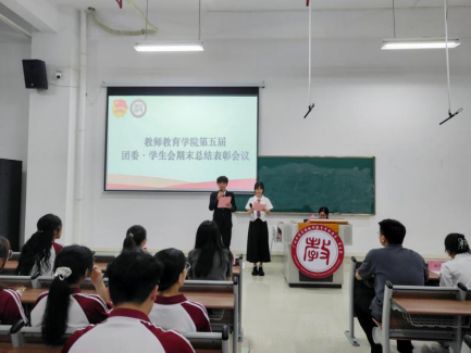 常委团成员代表赵淼鑫师姐引领团委学生会全体成员回望了过去一年的璀璨历程与丰硕收获。在这一年里,团委学生会紧密围绕就业需求,以育人为本、素质提升为核心、校园文化繁荣为愿景,精心策划并成功举办了第二届“我的教师梦”主题比赛等一系列活动,均取得了瞩目的成绩,荣膺先进集体殊荣。
