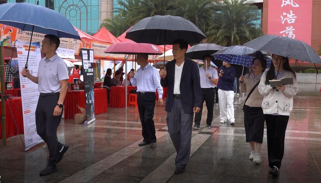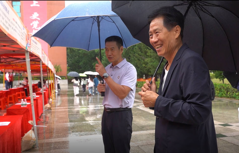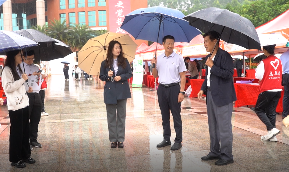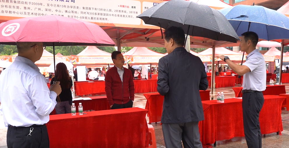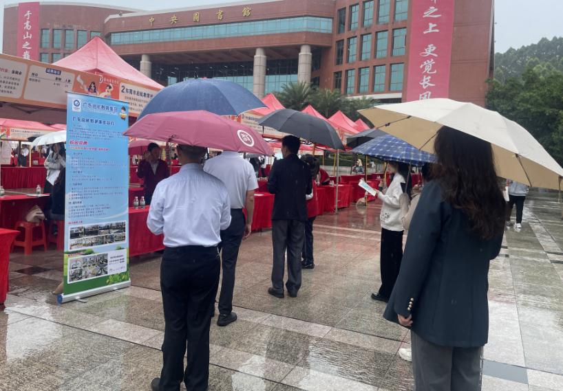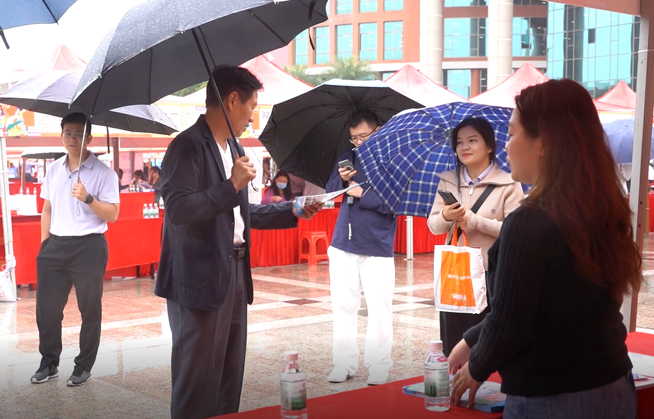 1946伟德国际源自英国领导班子非常重视本次学校组织的招聘会,在王金道院长的带领下,1946伟德国际源自英国领导班子、三办负责人以及学生辅导员亲临现场,了解本次招聘会的开展情况。尽管天气不佳,领导们还是顶着大雨,撑着伞前往现场,王院长等先后到东莞启航教育、广州华星教育、深圳龙岗金翅膀教育等招聘摊位进行考察,了解用人单位的用人需求以及对我们学院的学生评价。