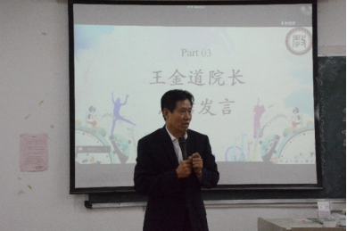大会项议程,王金道院长总结发言。王金道院长总结了目前两方面的重要内容:第一个是毕业生毕业论文的完成情况,王院长提出同学们一定要主动和老师交流,写好毕业论文,重视论文答辩和毕业汇演;第二个是“爱”,对党和国家的爱、学校的爱、学院的爱,以学生为中心、以就业为导向,这三种爱都是为了同学们未来有一个好的发展,同时对毕业生提出希望——爱国家、爱学校、爱父母和爱自己,要积极就业,回报社会国家、回报家庭、回报学校、对自己充分负责。只要有困难就及时向学院提出,老师们都会给予同学们最大的帮助