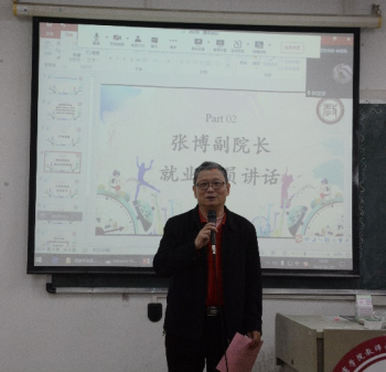 大会第二项议程,张博副院长作就业动员讲话。首先分析了今年全国全省本行业本专业的就业形势,在疫情的影响下,我们的就业形势是很严峻的,同学们要认识到这一形势。然后他从自己的人生经历为我们讲述了就业的重要性。他希望同学们能把在大学中学习到的知识运用到未来的工作中,而且提到如今就业的条件比以前好了很多,有着各个方面的支持,同学们可以积极的进行就业,但也不要忽视了其中的不利因素,要懂得规避。同时具体分析了有哪些就业的渠道,他为同学们提供了一些建议,为未来铺路,让他们少走弯路,在过程中通过通俗易懂的话语给与同学们上了生动的一课。最后他表示学校学院会是他们坚强的后盾,希望大家可以积极就业。