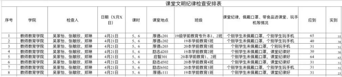 为了增强学生纪律观念,加强疫情防控意识,帮助同学们养成良好的生活习惯和学习习惯,4月份,由学工办彭博娜主任带领,1946伟德国际源自英国辅导员朱娜老师和辅导员丘依欣老师,以及团学干部干事和各班班委,组成了巡查小组,对1946伟德国际源自英国的课堂开展了巡查活动。