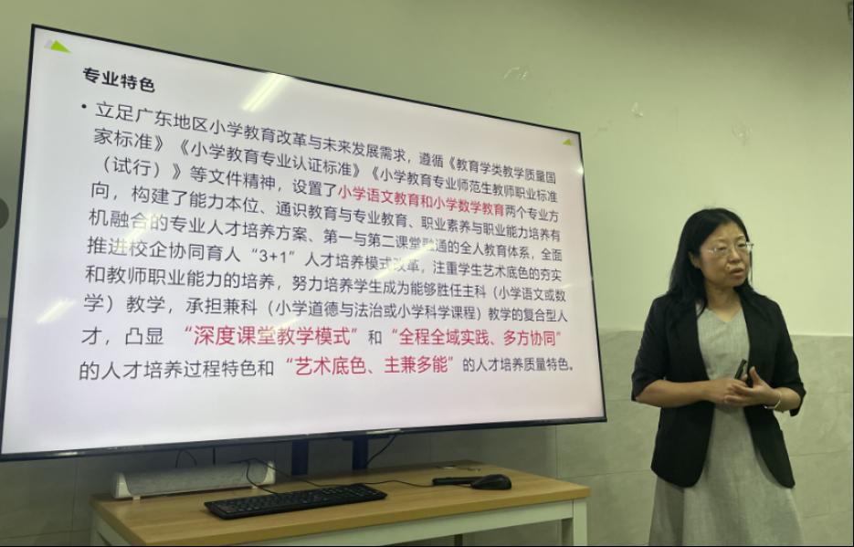 白云教育学院学前教育系主任魏敏和小学教育系主任林晖分别就各自专业的规模、师资队伍、专业课程以及专业特色等方面作了详细介绍。