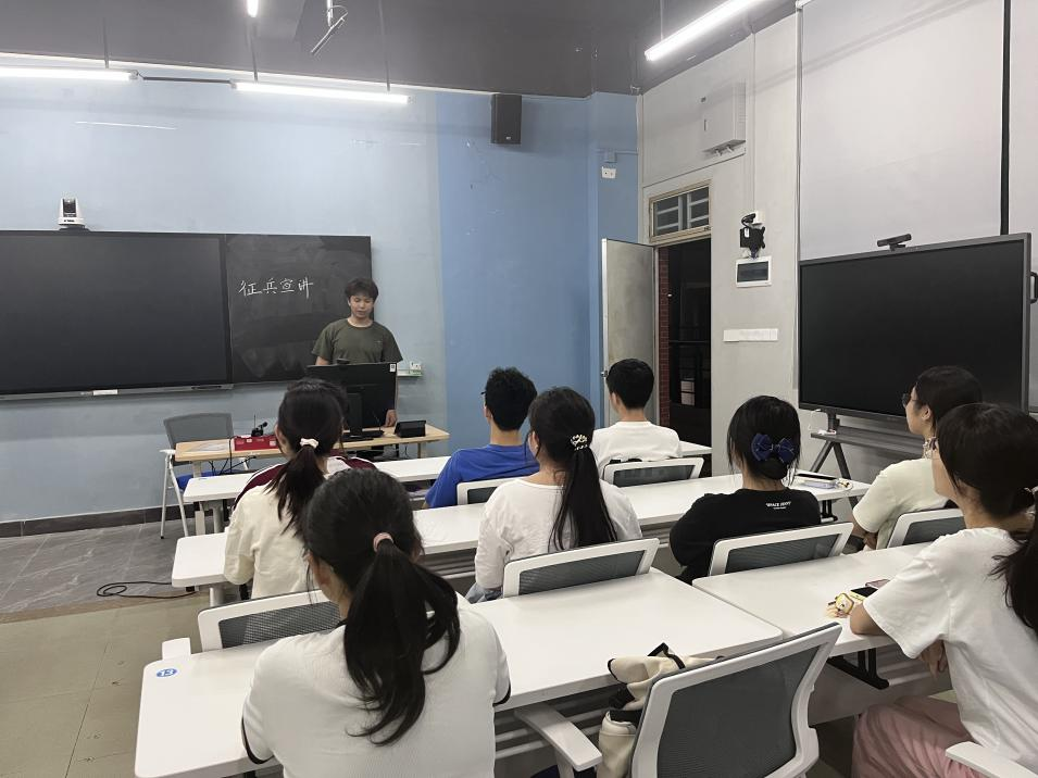为响应2025年征兵工作号召,切实推进征兵工作落实,1946伟德国际源自英国积极开展校园征兵宣传活动,鼓励学生投身国防事业,为国家的安全和发展贡献力量。2025年4月24日晚上,1946伟德国际源自英国退役大学生士兵于励志楼开展了以“青春铸军魂,热血报祖国”为主题的征兵宣讲会,会议主持人是1946伟德国际源自英国征兵负责人张雅芬老师。