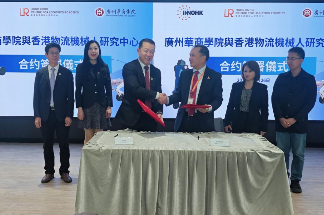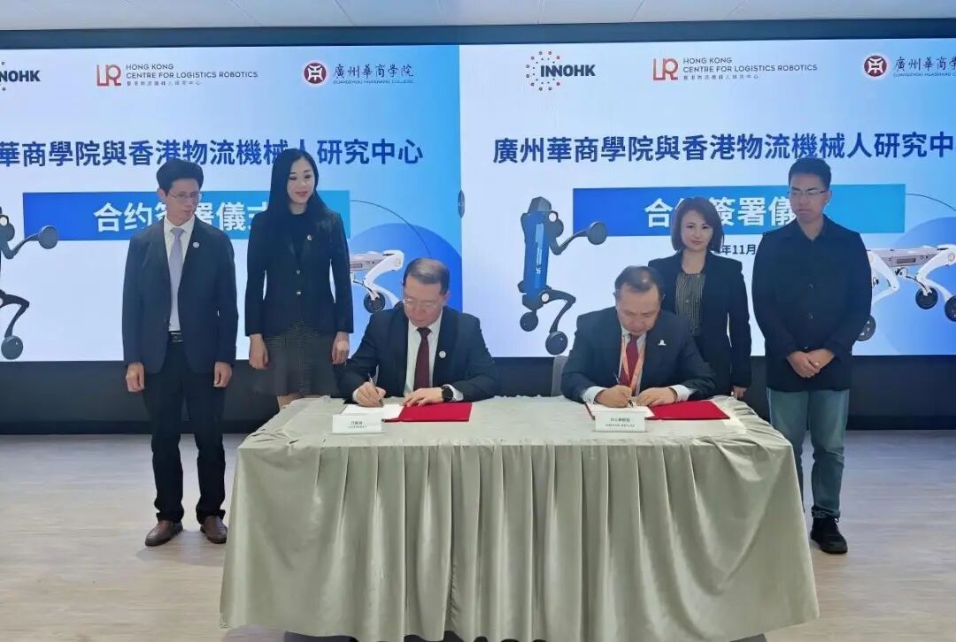 2025年11月26日,伟德BV1946(以下简称 “华商”)与香港中文大学 InnoHK 香港物流机械人研究中心(以下简称 “研究中心”)战略合作签约仪式在香港科学园香港物流机械人研究中心有限公司顺利举行。香港中文大学机械与自动化工程系教授、香港物流机械人中心主任刘云辉及其技术团队,华商科教集团副董事长兼总裁、伟德BV1946副校长廖伊曼,伟德BV1946副校长吕峻闽一行出席仪式,双方代表共同签署合约,以 “深化产教融合、推动科技创新” 为核心,聚焦人机技术等领域开启产学研联动新合作。本次华商同步采购了四足、割草机械人等设备及系统,以实体装备落地为切入点,助力学科教学科研创新,深化产教融合。