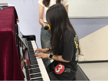 比赛环节精彩纷呈,选手们以钢琴弹唱和儿歌唱跳为主要表演形式,各展所长、创意迭出。钢琴弹唱的选手们指尖灵动,旋律轻快悠扬,贴合儿歌情感的语调,将一首首经典儿歌演绎得生动悦耳,尽显扎实的乐器演奏与演唱功底;儿歌唱跳的选手们则化身“幼儿引路人”,动作创编简单易懂、贴合儿歌主题与节奏,灵动的表情、活泼的舞姿搭配简易精巧的道具,营造出充满童趣的表演情境,让现场仿佛置身于欢乐的幼儿课堂。选手们均以幼儿化的表演特点为核心,将教育性与趣味性融入表演之中,充分展现了学前教育学子对儿歌表演技巧的精准把握,以及良好的舞台表现力和创意创编能力。