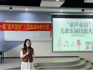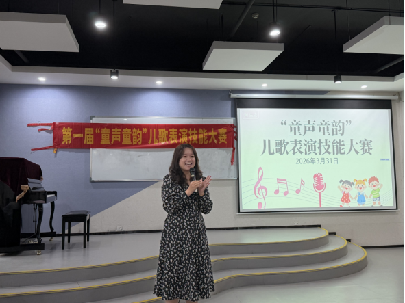 为夯实学前教育专业学生的幼儿艺术教育基本功,提升儿歌演绎与舞台表达能力,推动专业技能与课程教学深度融合,2026 年 3 月 31日下午,1946伟德国际源自英国学前教育专业第一届 “童声童韵” 儿歌表演技能大赛在肇庆校区顺利举行。本次大赛以赛促学、以赛促练、以赛促能,为学前教育学子搭建了展示专业素养与艺术风采的实践平台,赛场之上童声悠扬、活力满满,尽显学子们的专业风采与童趣创意。