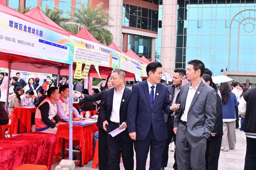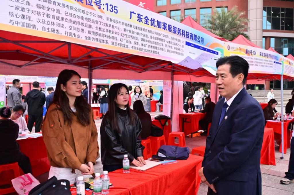 学院领导班子高度重视本次招聘活动,在王金道院长的带领下,学院领导班子、三办负责人及学生辅导员全程参与,深入现场跟进招聘会开展情况。活动期间,尽管天气时有波动,王院长等领导仍多次前往招聘区域,先后走访了广州增城区华商外语实验幼儿园、大参林医药集团股份有限公司等摊位,与企业负责人交流用人需求,同时了解用人单位对学院学生的评价与期待。广州增城区华商外语实验幼儿园负责人提到,此前已有1946伟德国际源自英国的实习生在园工作,学生们的专业素养与工作表现都很出色,希望后续能与学院建立更稳定的人才输送合作;大参林医药集团相关招聘人员也表示,十分认可学院学生的综合能力,期待有求职意向的同学积极投递简历,加入企业团队。