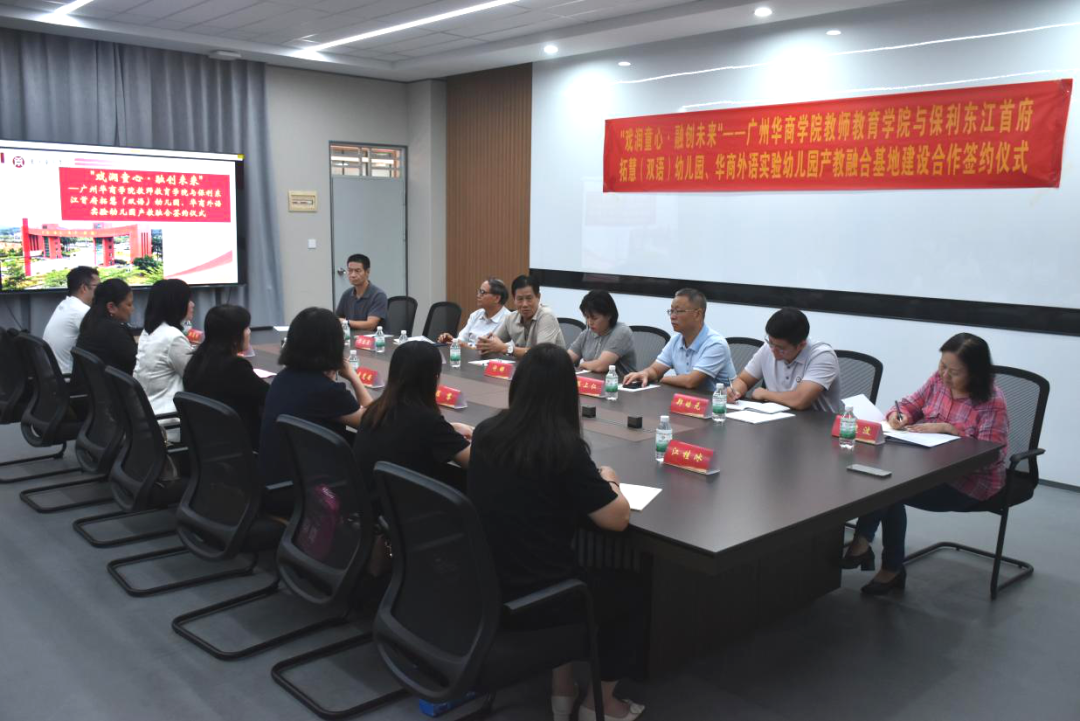 2025年9月9日下午,以“戏润童心・融创未来”为主题的产教融合签约仪式,在伟德BV1946创新楼 201 会议室顺利举行。1946伟德国际源自英国与保利东江首府拓慧(双语)幼儿园、华商外语实验幼儿园正式达成产教融合合作,旨在通过校企协同,探索教师教育人才培养新路径,实现资源共享与优势互补。