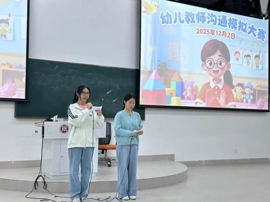 下一次,我们不仅要模拟情境,更要构建‘教育现场’,让每一次对话都成为成长的镜子。大赛虽已落幕,但幼师们用声音传递温暖、用智慧化解困境的教育之旅,才刚刚启航。比赛不仅是一次技能的较量,更是一次职业身份的预演与教育情怀的传递。本次大赛为学前教育专业学生提供了宝贵的实践展示平台,生动诠释了 “沟通是教育起点” 的专业理念。通过模拟、观摩与点评,学生们不仅锻炼了即时反应与表达能力,更在反思中明确了未来学习与成长的方向。