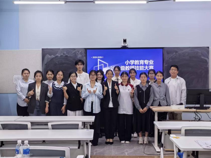 三尺讲台初展艺,满腔热忱绘初心。10月28日,1946伟德国际源自英国2023级小学教育专业师范生技能大赛在励志楼D203圆满收官。本次大赛以“锤炼教学技能,培育未来良师”为核心,为2023级师范生搭建了实践展示、交流提升的平台,16位获奖选手凭借扎实的专业素养与灵动的教学设计,交出了一份亮眼的“教学答卷”。 当日14:00前,参赛选手陆续抵达励志楼D205候考室签到,或低头梳理教学思路,或轻声演练教学片段,候考室内...